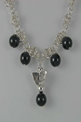 This beautiful handcrafted necklace is fashioned from handcut links of sterling silver with 8mm black tigers eye beads and a centerpiece featuring a lovely sterling butterfly. This necklace is adjustable to fit 16- 18 inches.